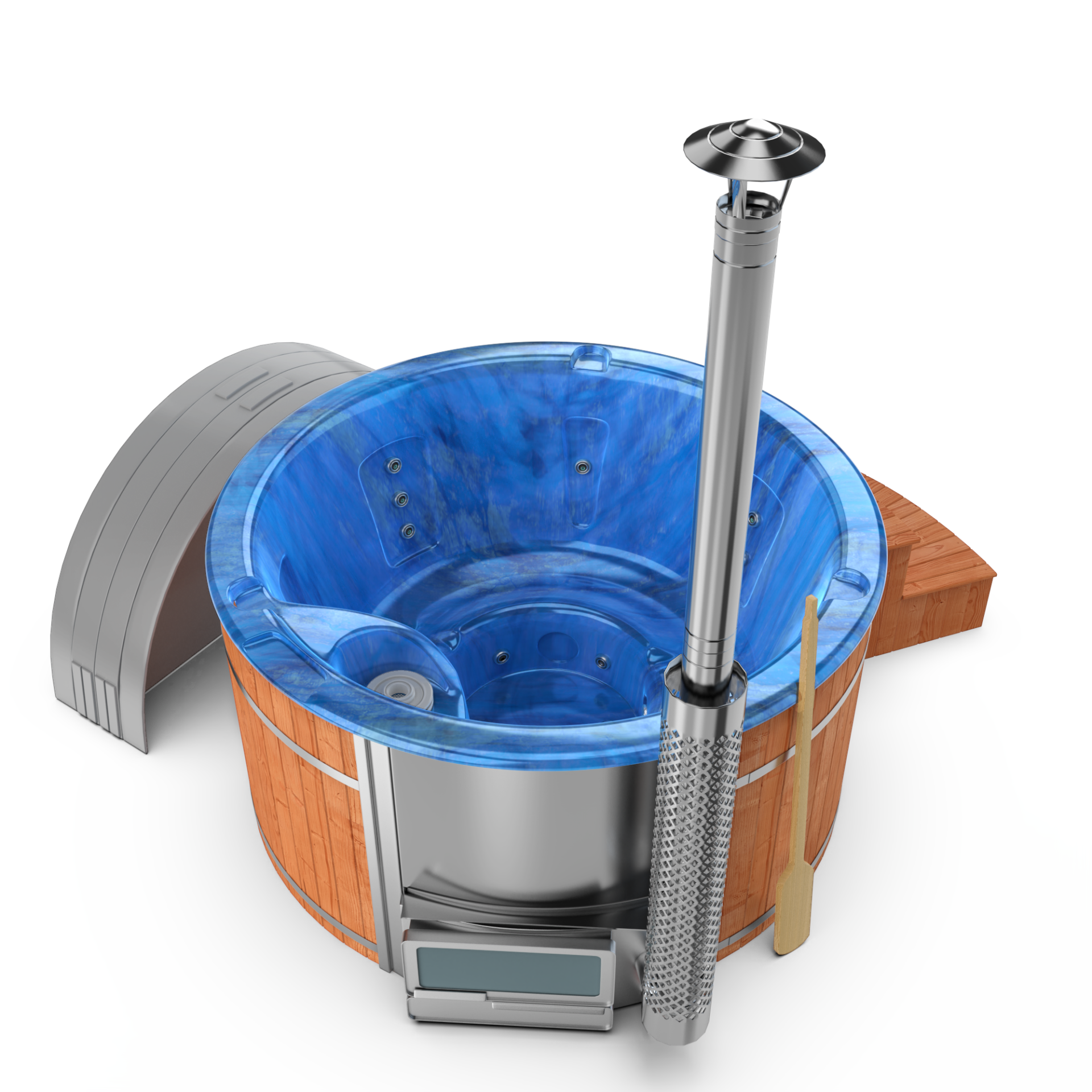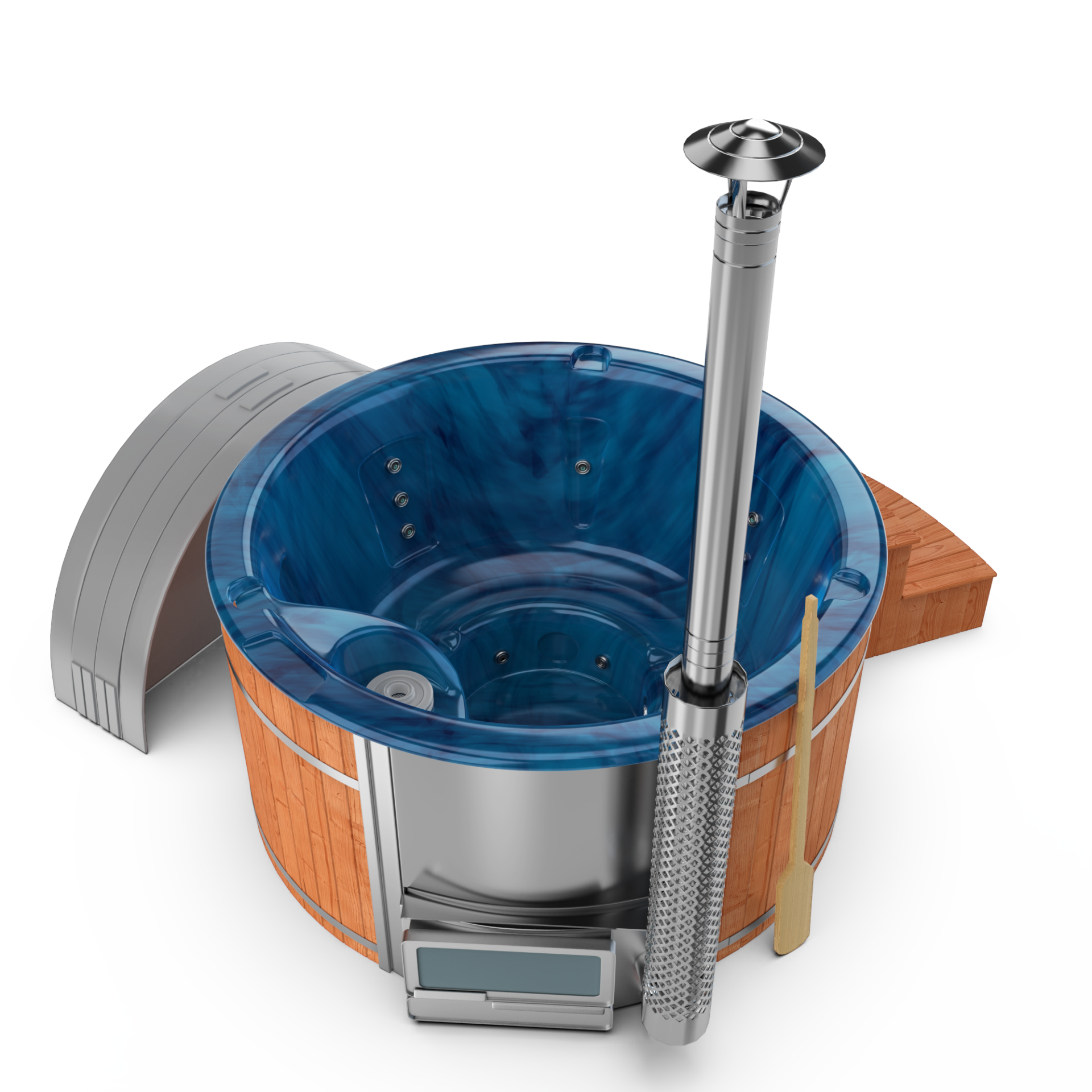 Experience enchanting evenings with LED underwater lighting. Create a captivating ambiance as the gentle and soothing glow illuminates the water, casting an inviting aura that transforms your wood-fired hot tub into a haven of relaxation and visual delight, making each soak a truly magical experience.