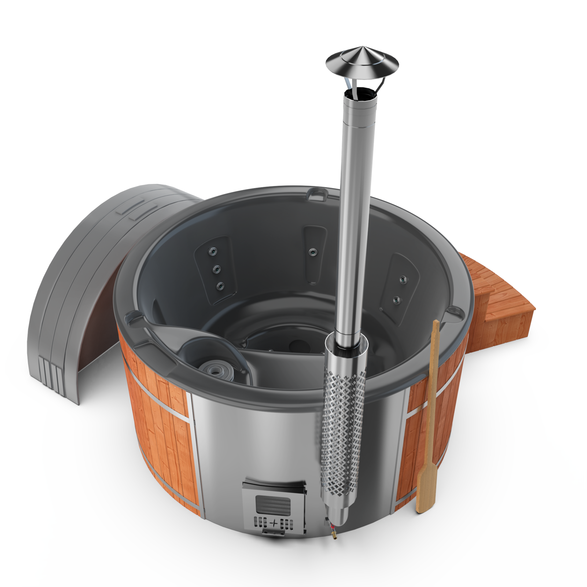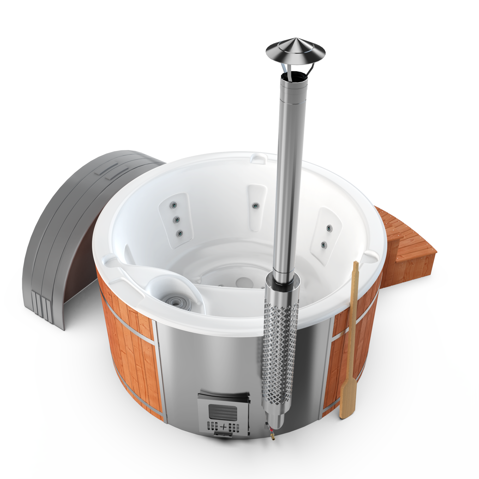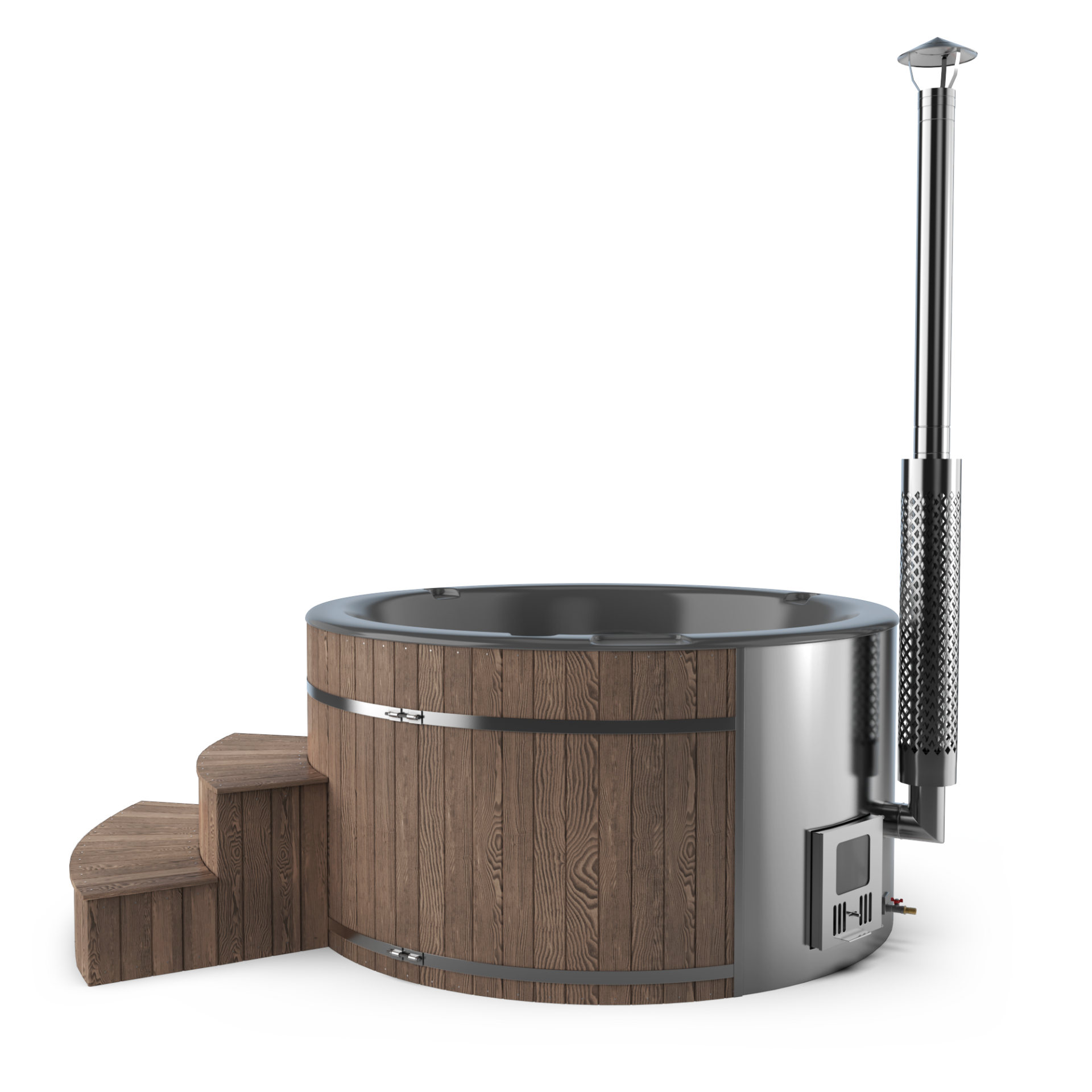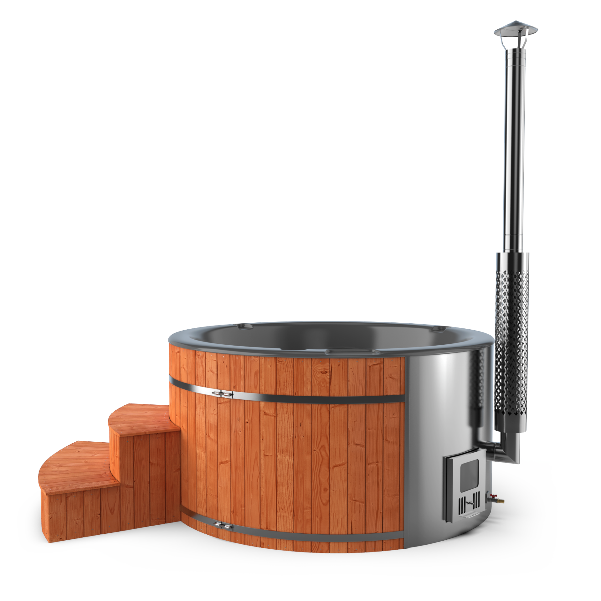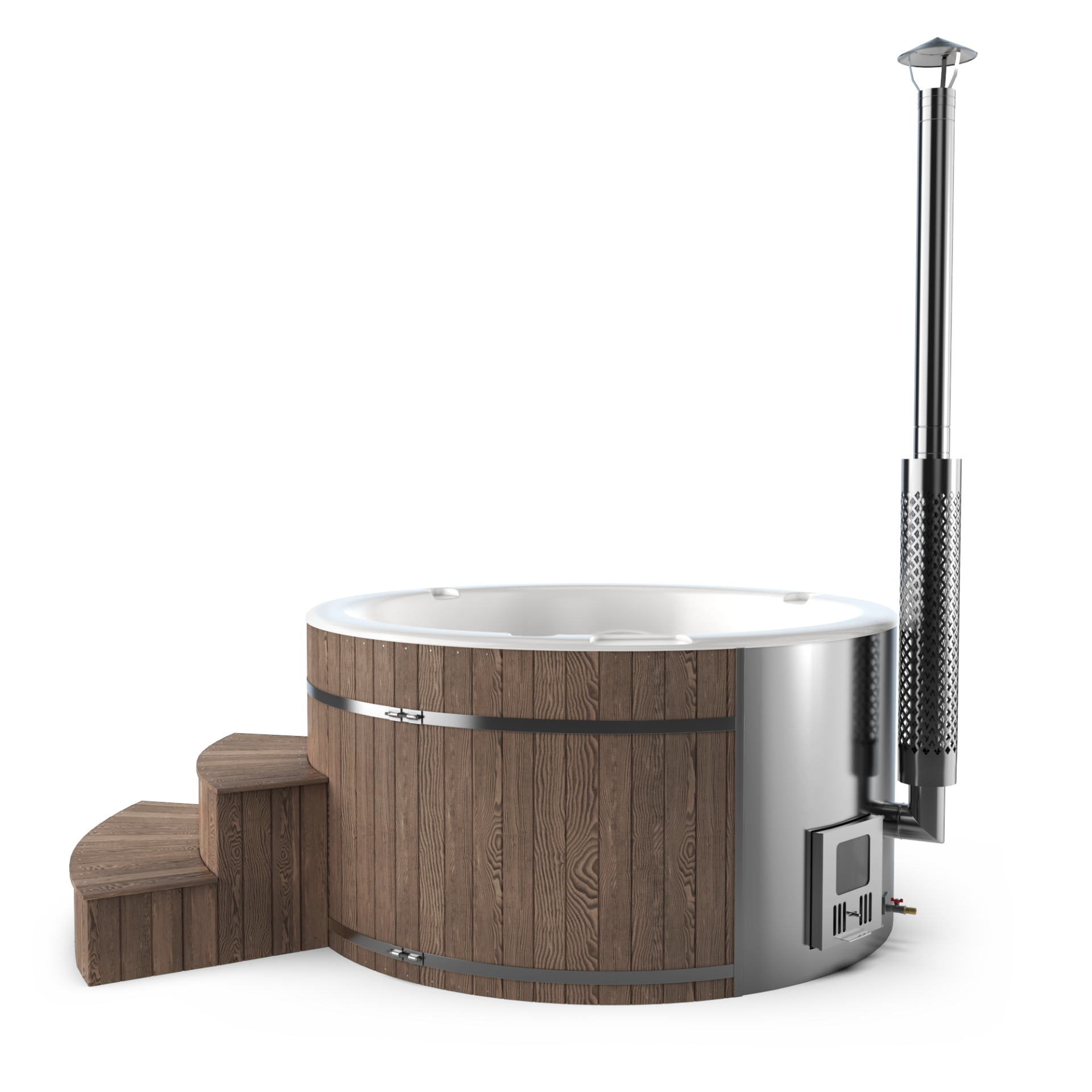 Experience quick relaxation with the “Heats Up in ±2 Hours” feature. Designed for efficiency, this rapid heating system ensures that your wood-fired hot tub reaches a comfortable temperature in approximately two hours, allowing you to swiftly unwind and immerse yourself in soothing warmth.