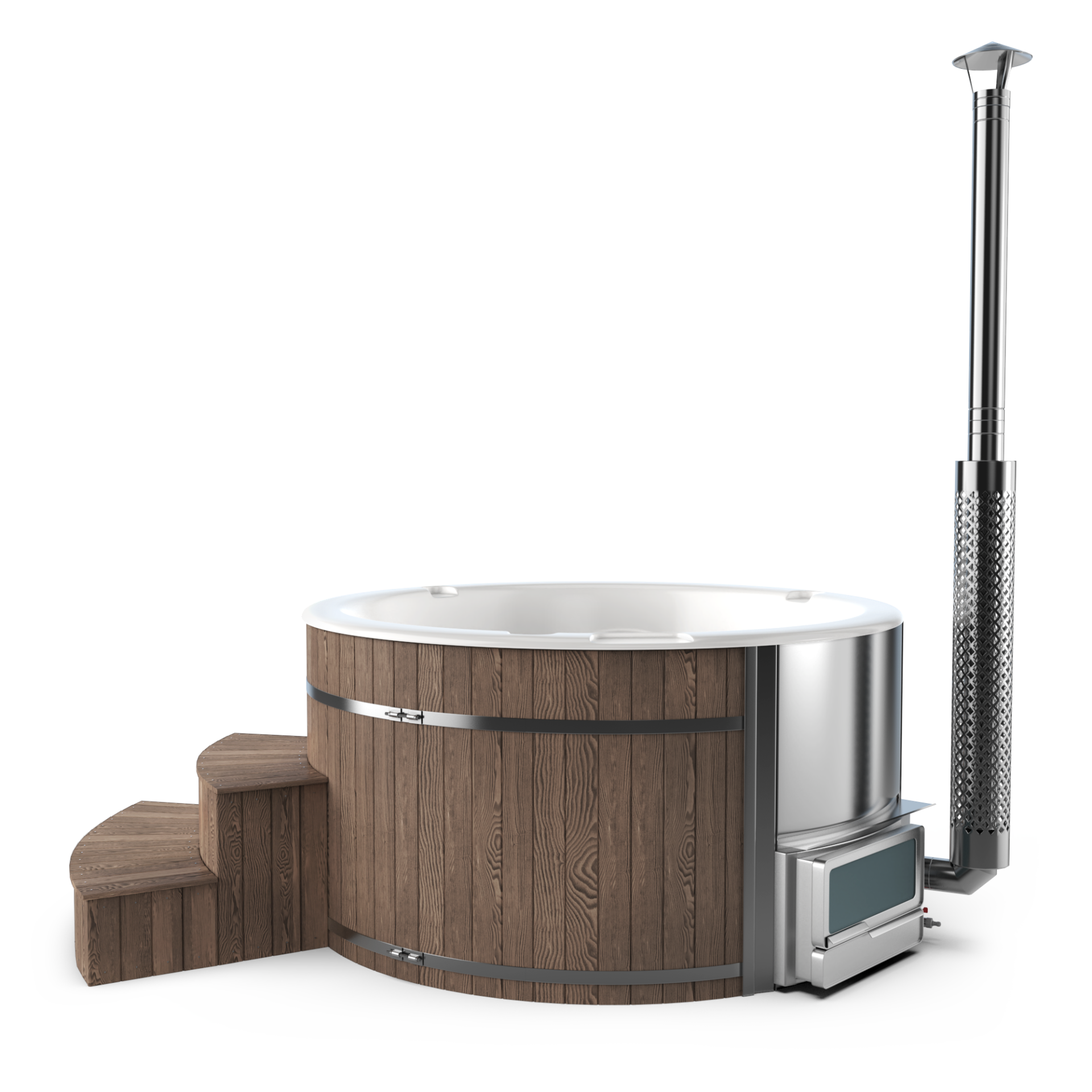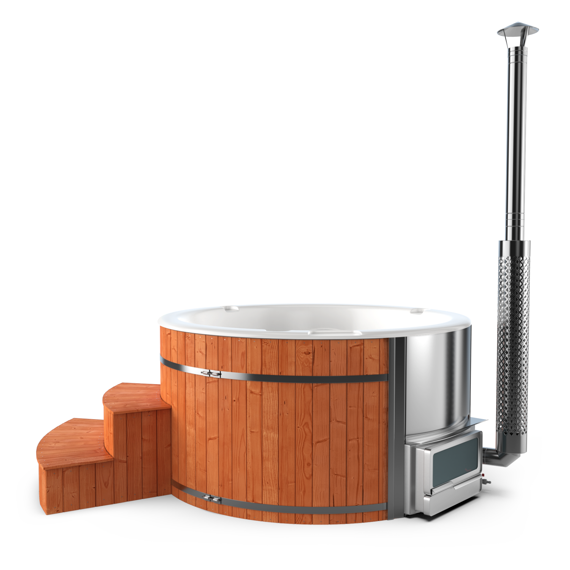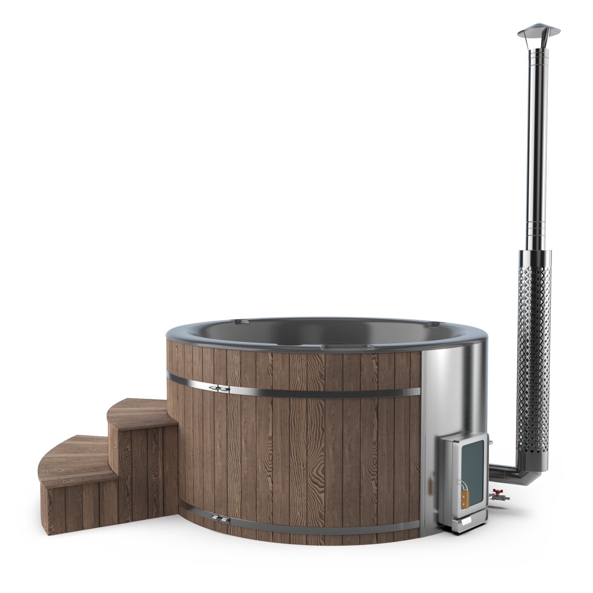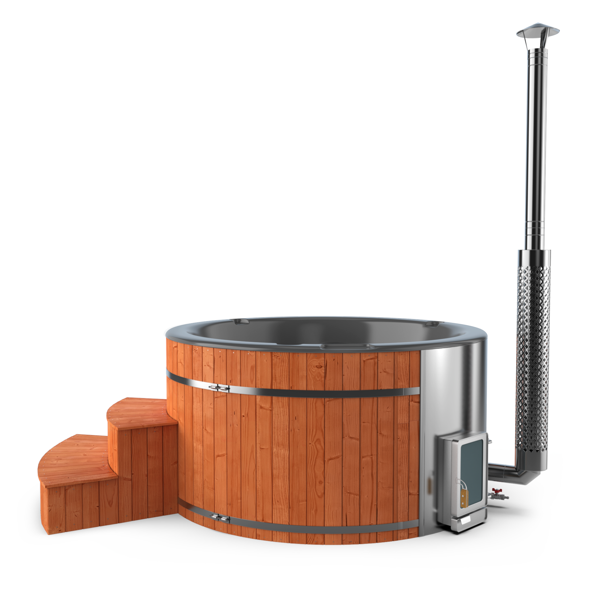 Experience quick relaxation with the “Heats Up in ±2 Hours” feature. Designed for efficiency, this rapid heating system ensures that your wood-fired hot tub reaches a comfortable temperature in approximately two hours, allowing you to swiftly unwind and immerse yourself in soothing warmth.