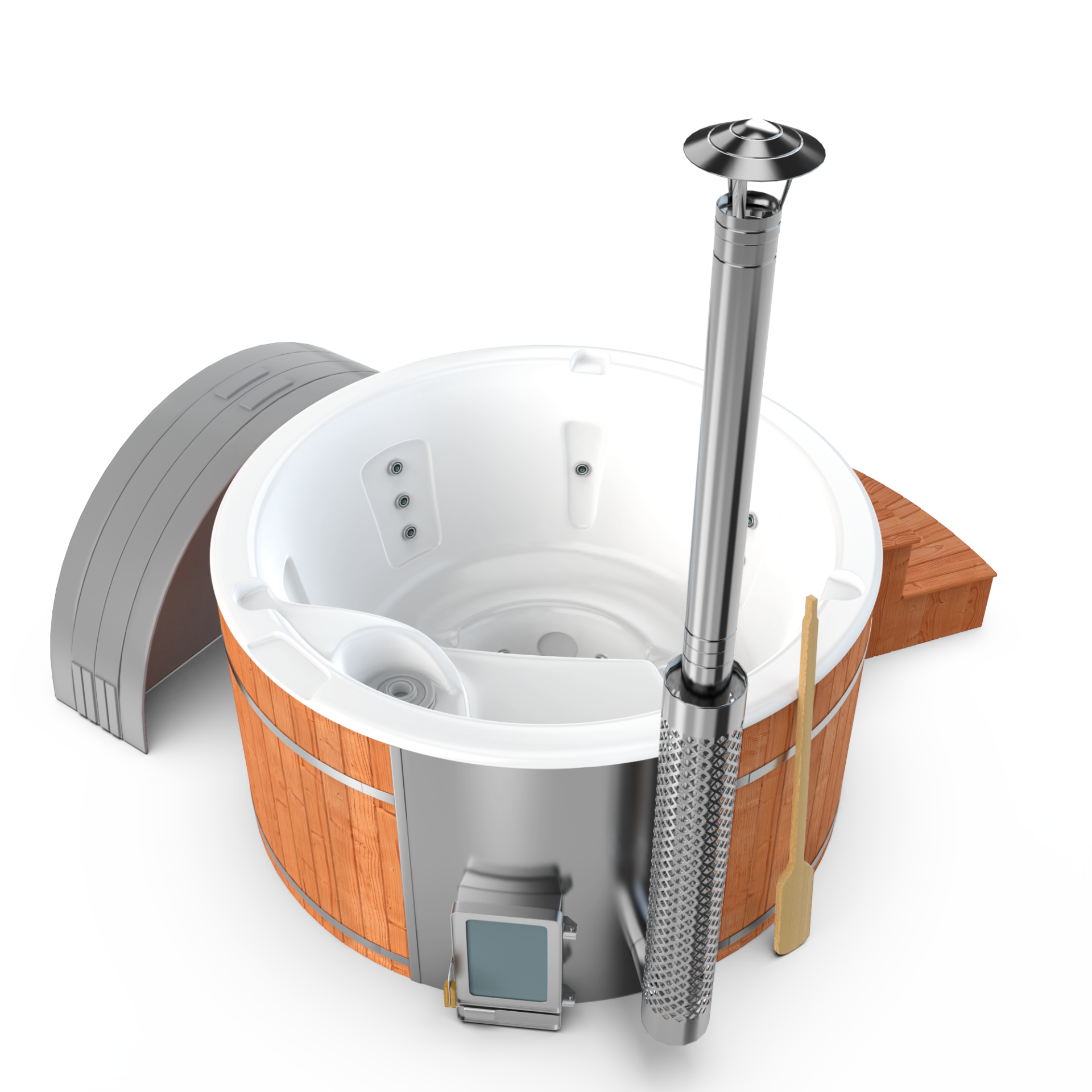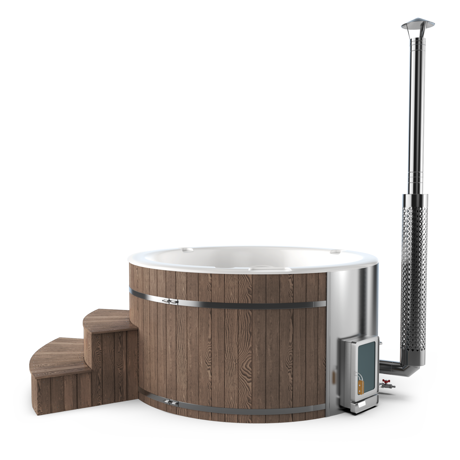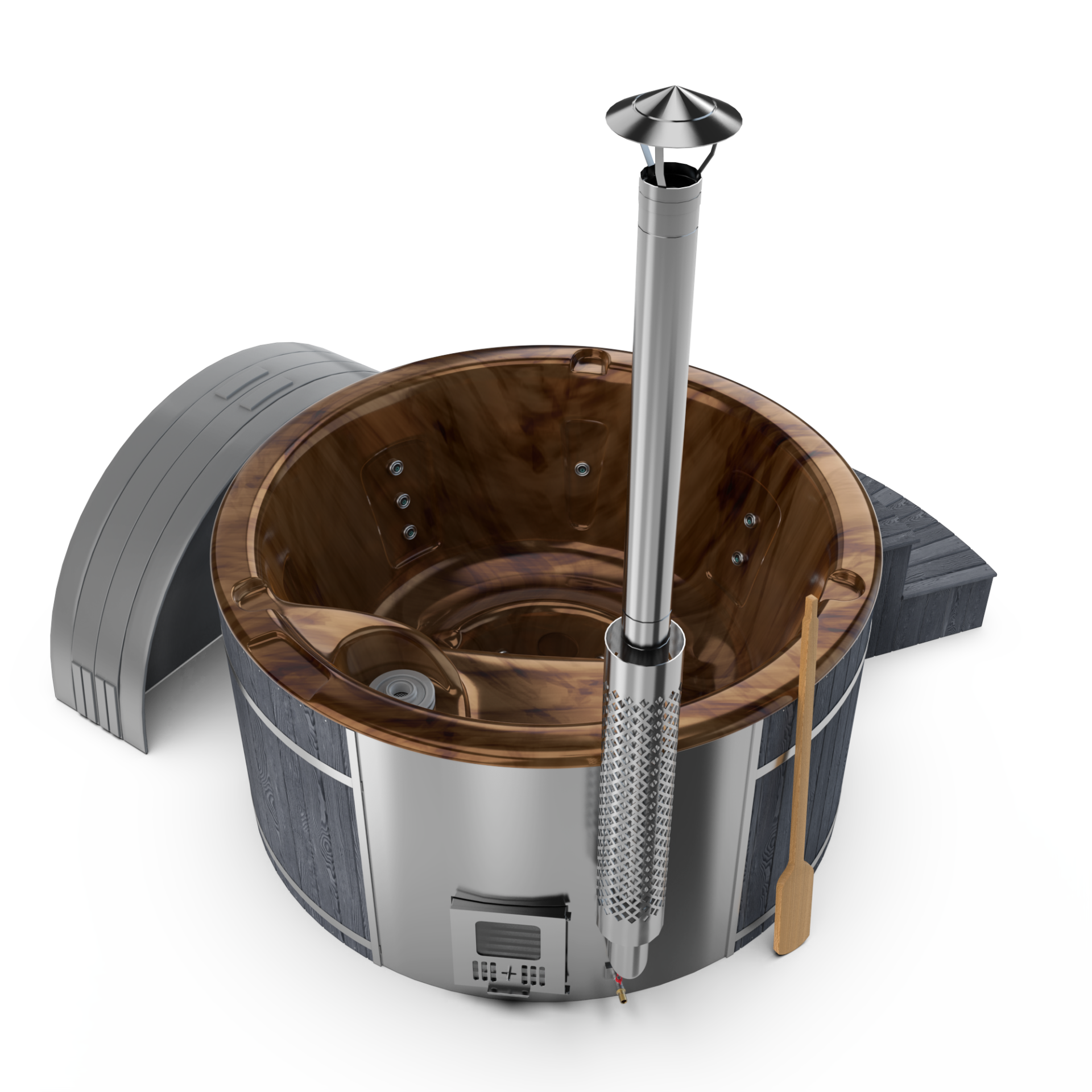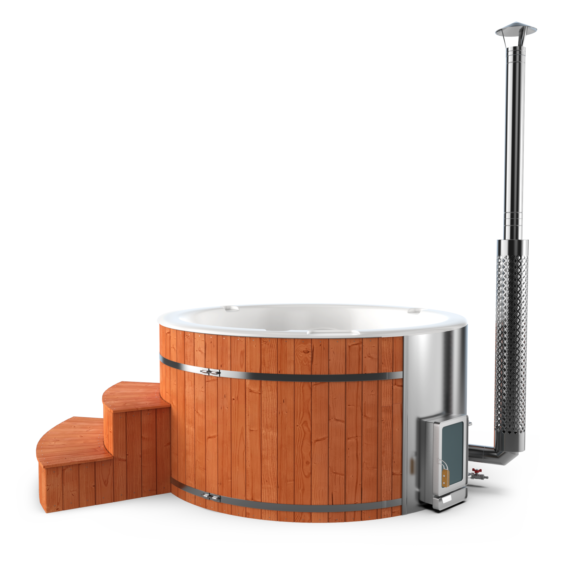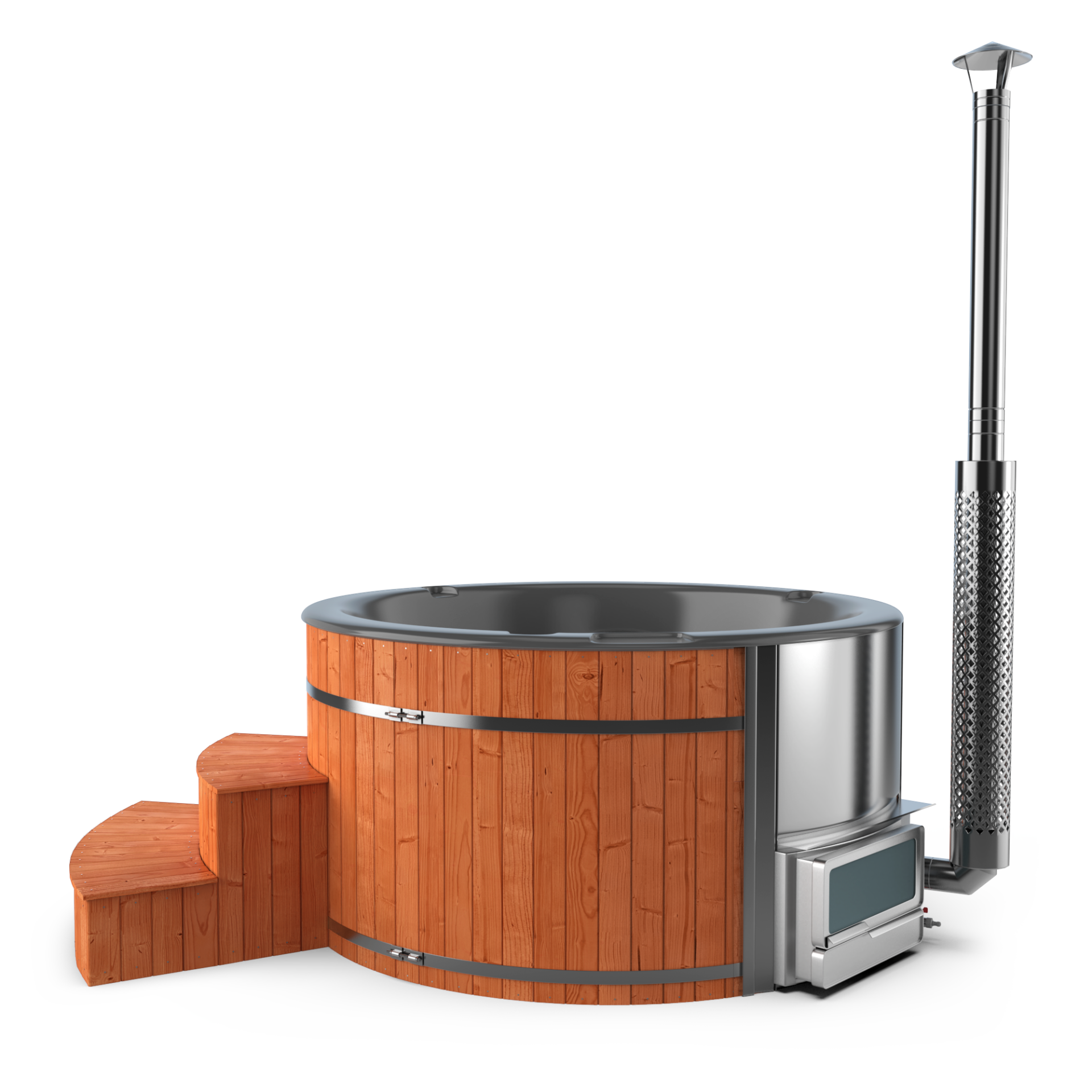 Experience quick relaxation with the “Heats Up in ±2 Hours” feature. Designed for efficiency, this rapid heating system ensures that your wood-fired hot tub reaches a comfortable temperature in approximately two hours, allowing you to swiftly unwind and immerse yourself in soothing warmth.
