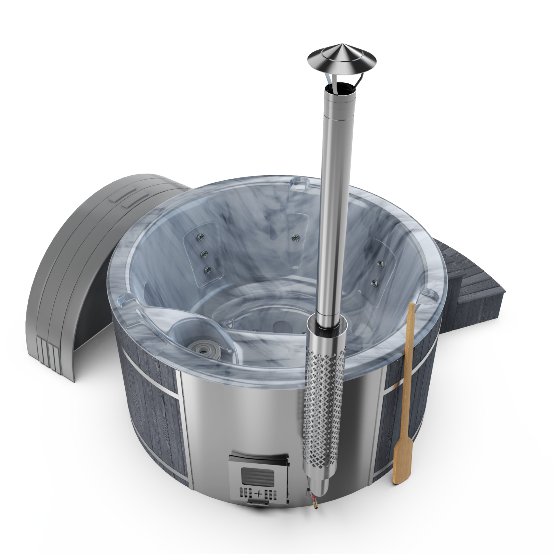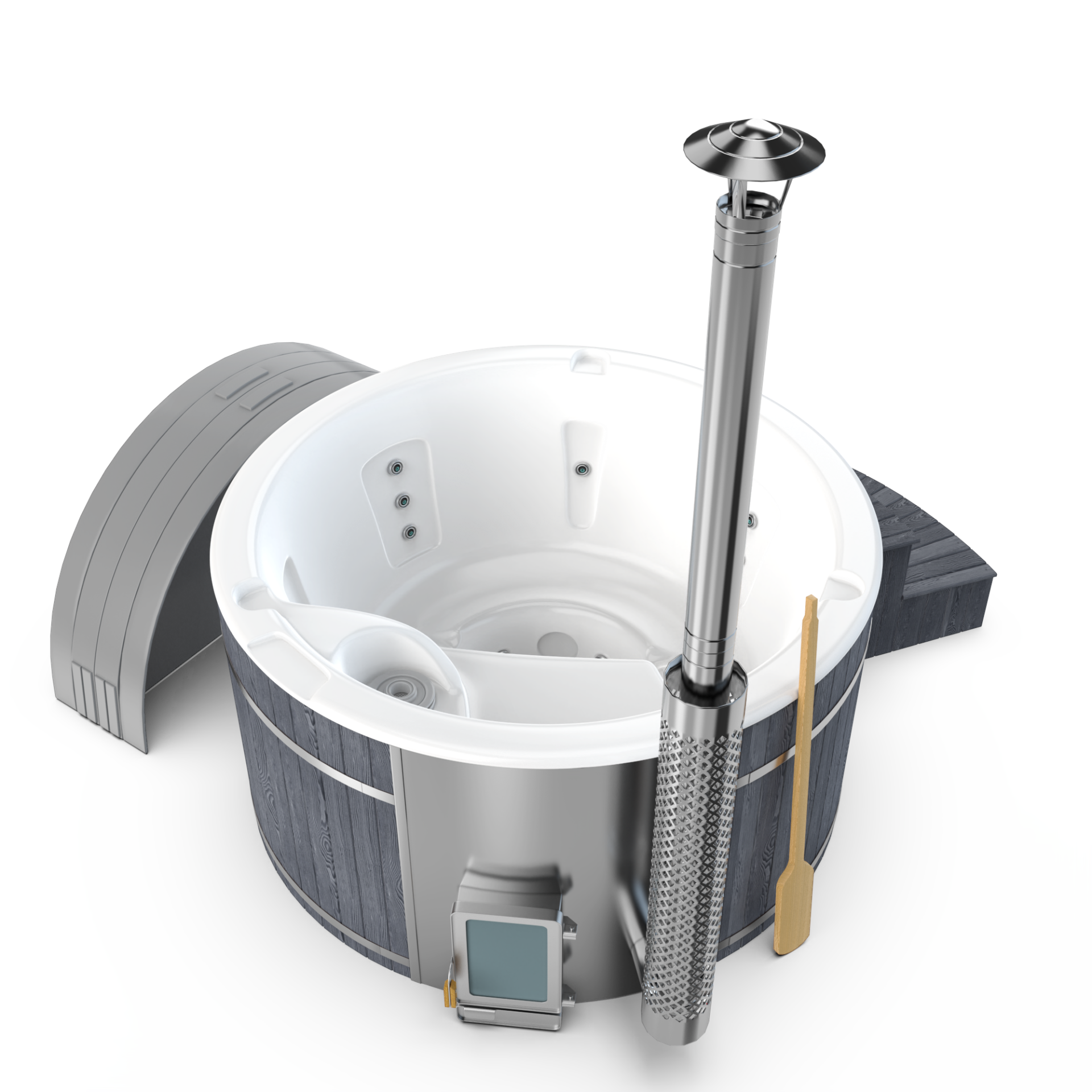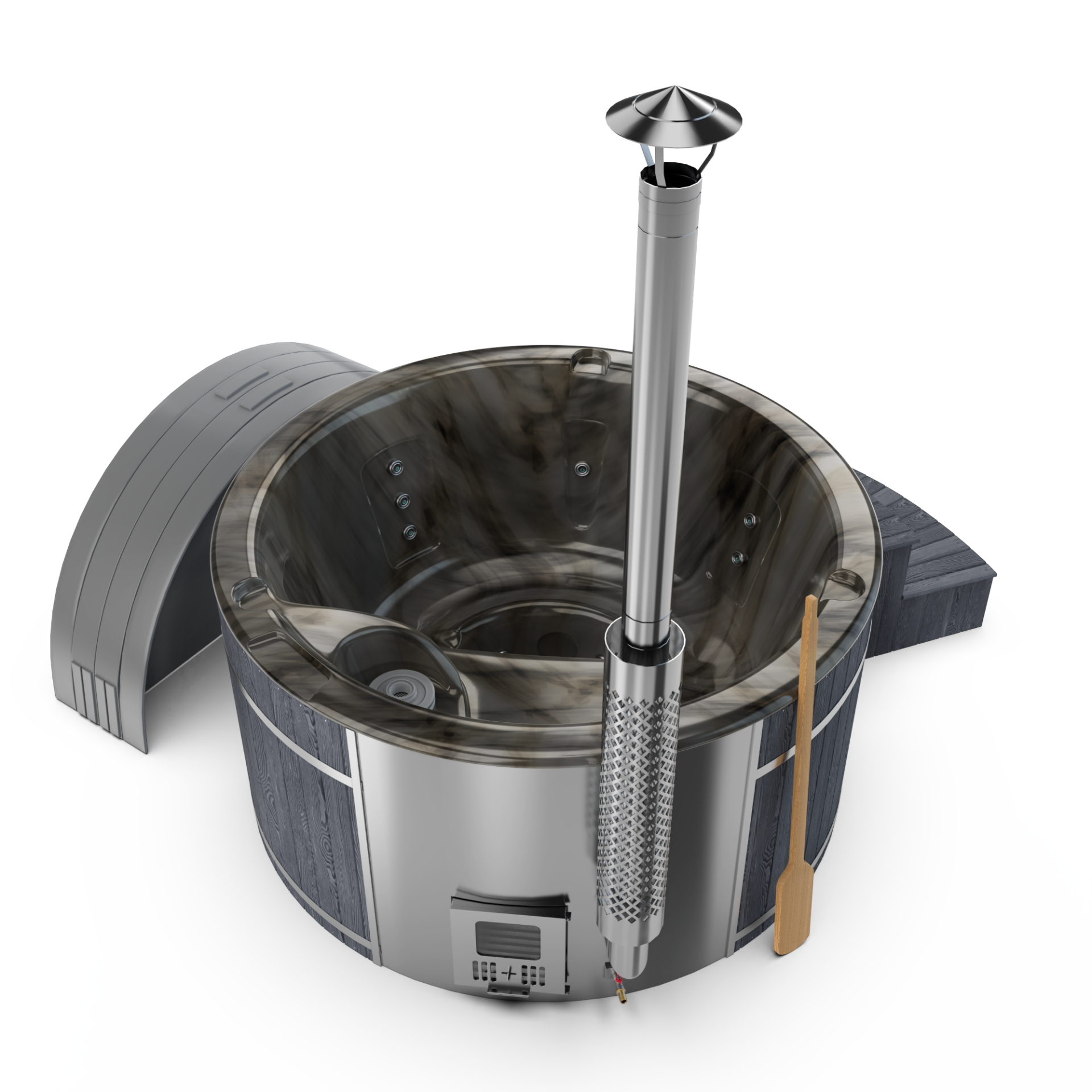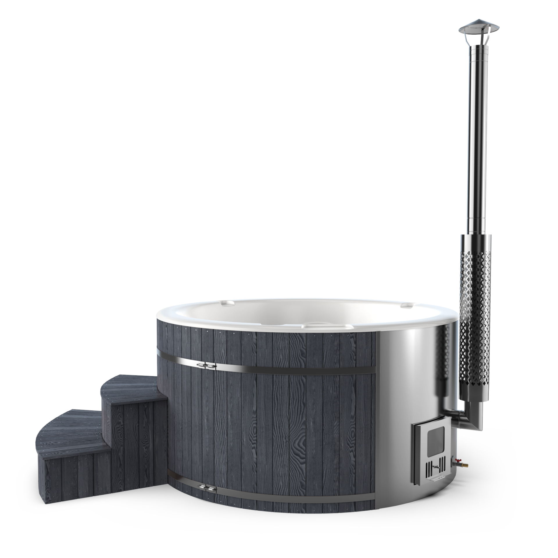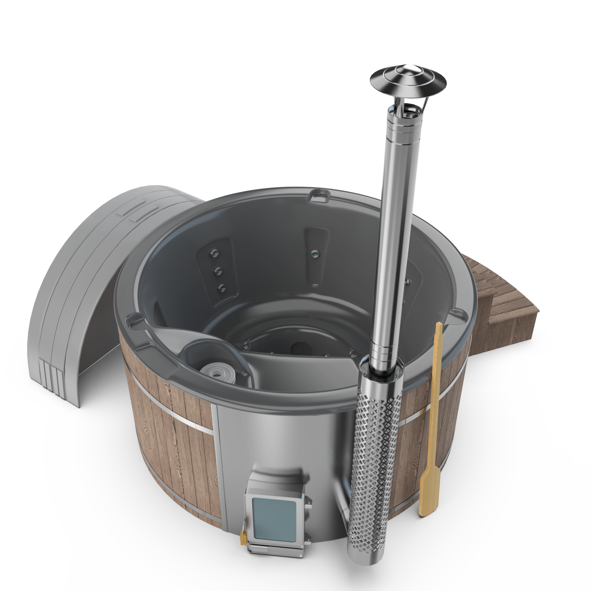 Experience quick relaxation with the “Heats Up in ±2 Hours” feature. Designed for efficiency, this rapid heating system ensures that your wood-fired hot tub reaches a comfortable temperature in approximately two hours, allowing you to swiftly unwind and immerse yourself in soothing warmth.