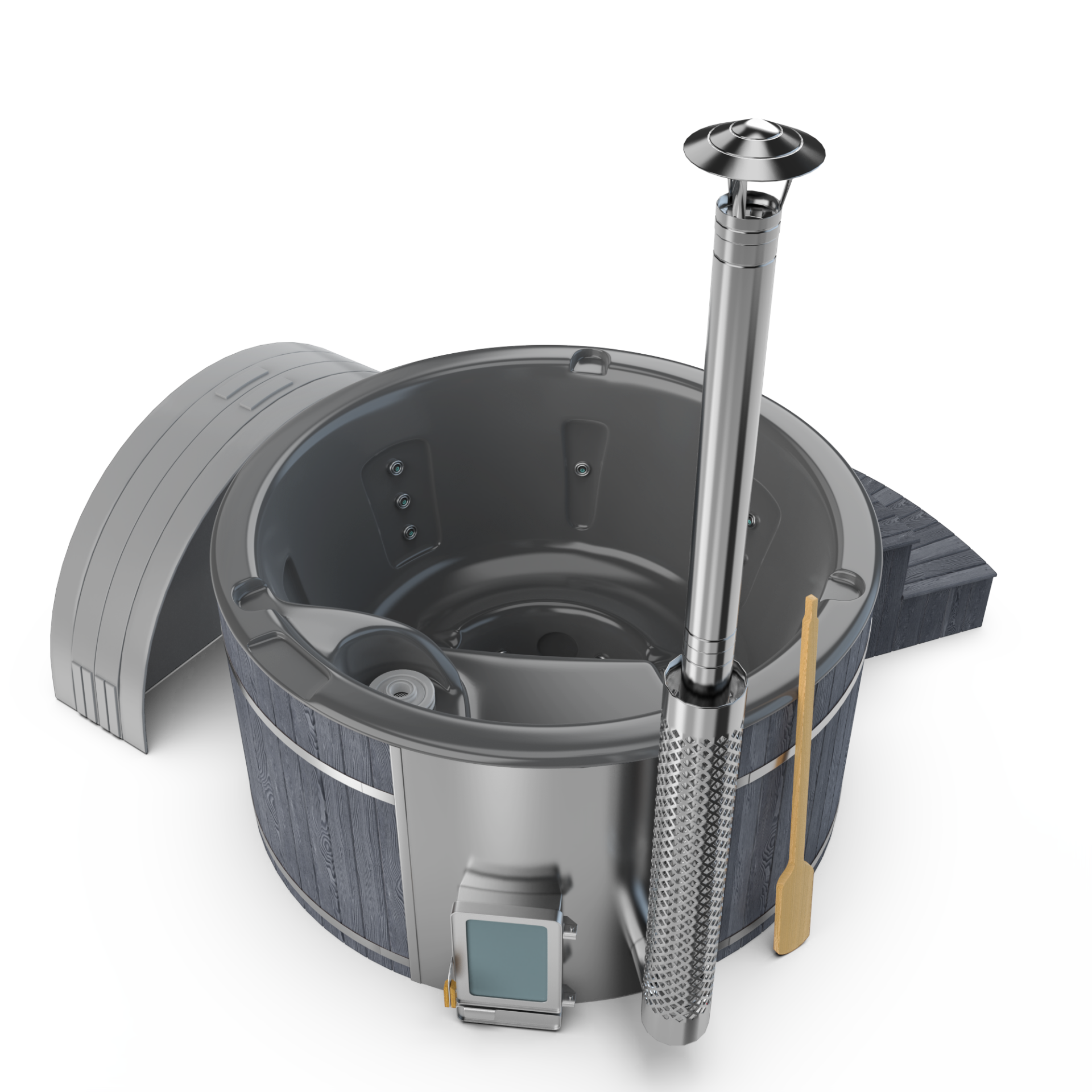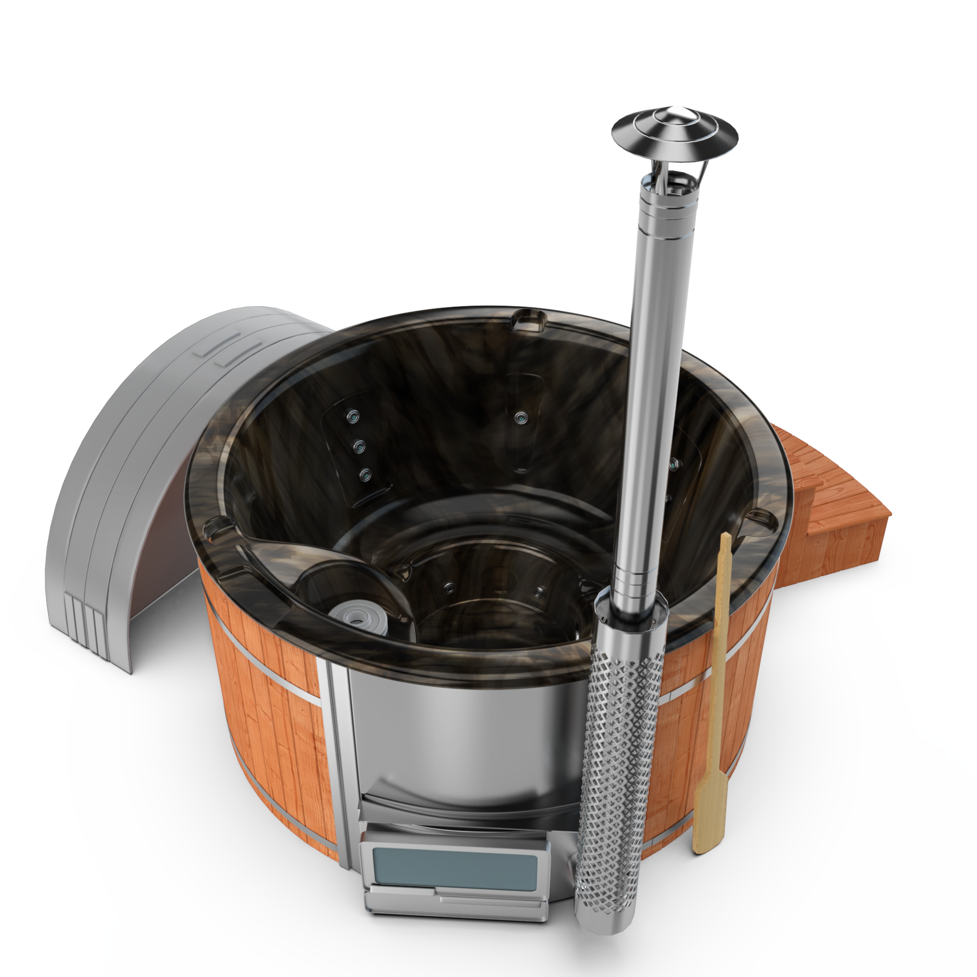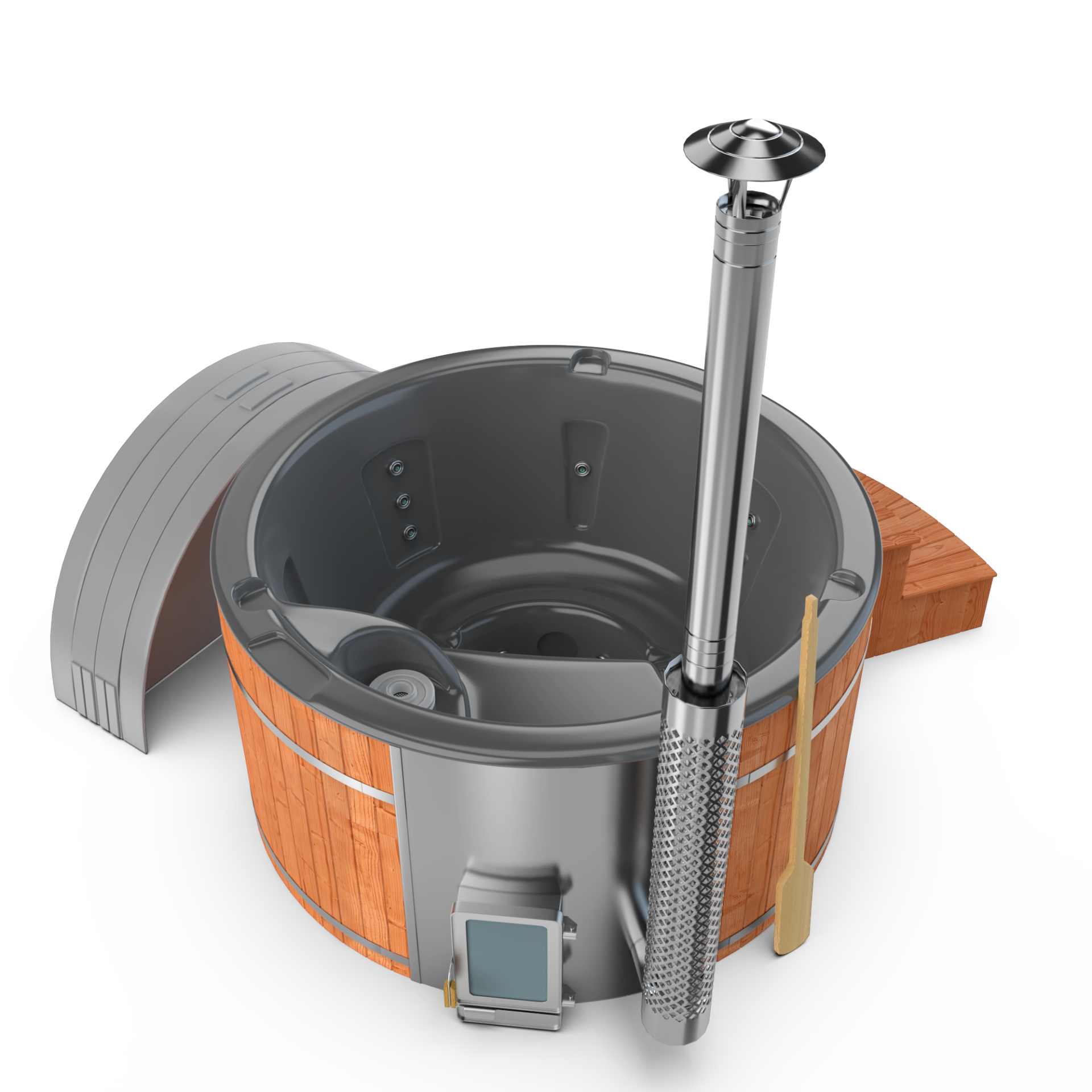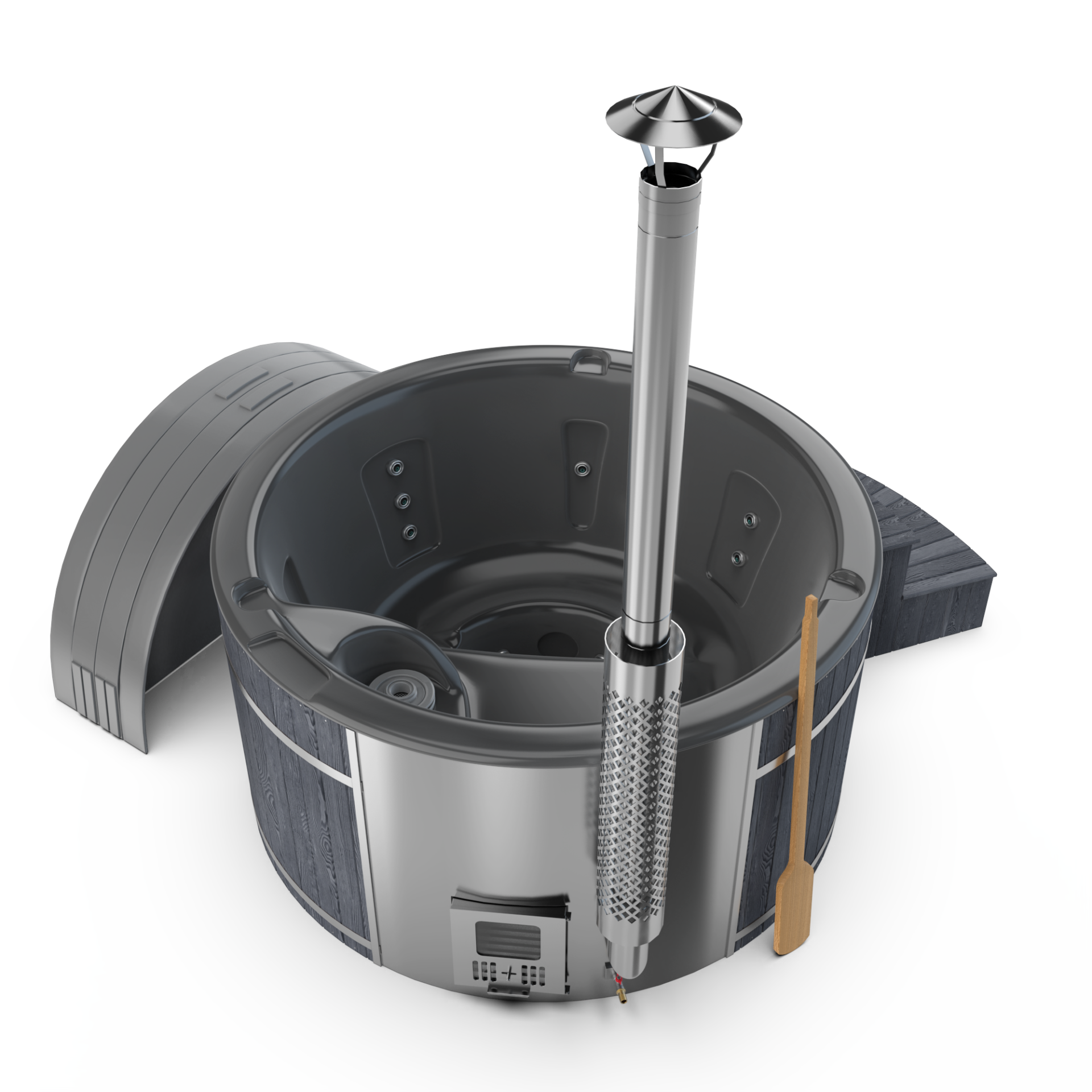 Experience quick relaxation with the “Heats Up in ±2 Hours” feature. Designed for efficiency, this rapid heating system ensures that your wood-fired hot tub reaches a comfortable temperature in approximately two hours, allowing you to swiftly unwind and immerse yourself in soothing warmth.