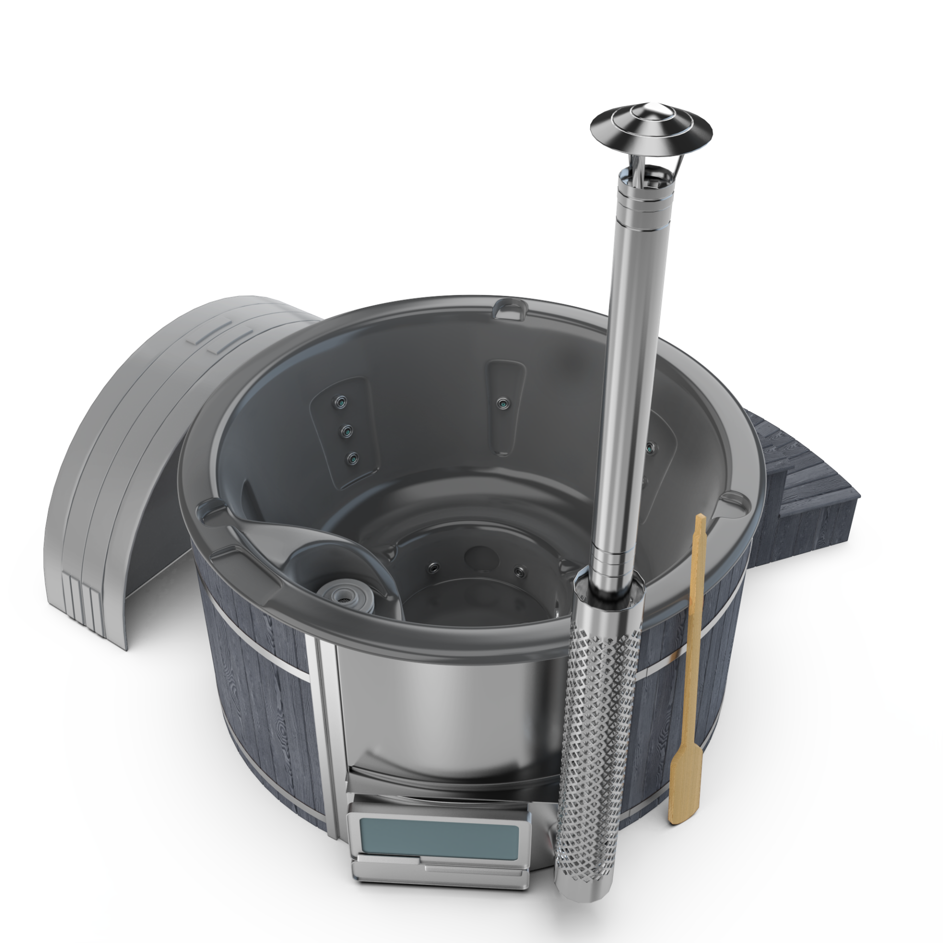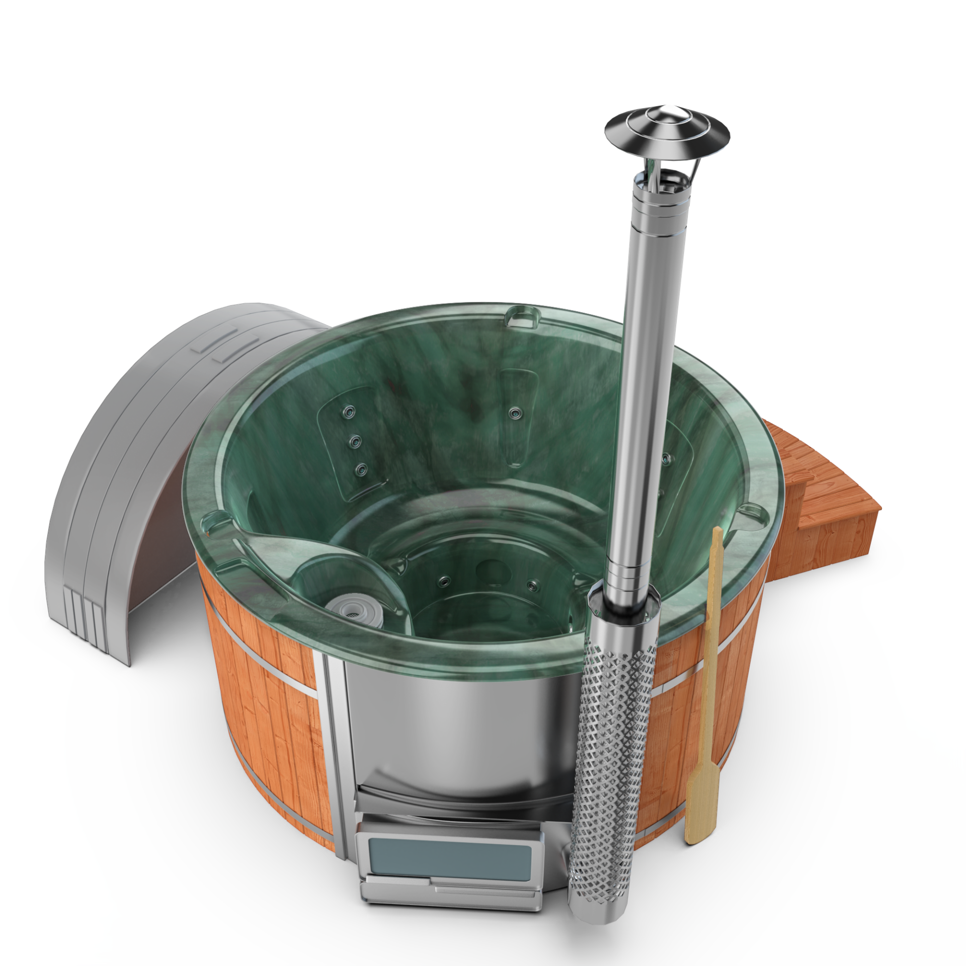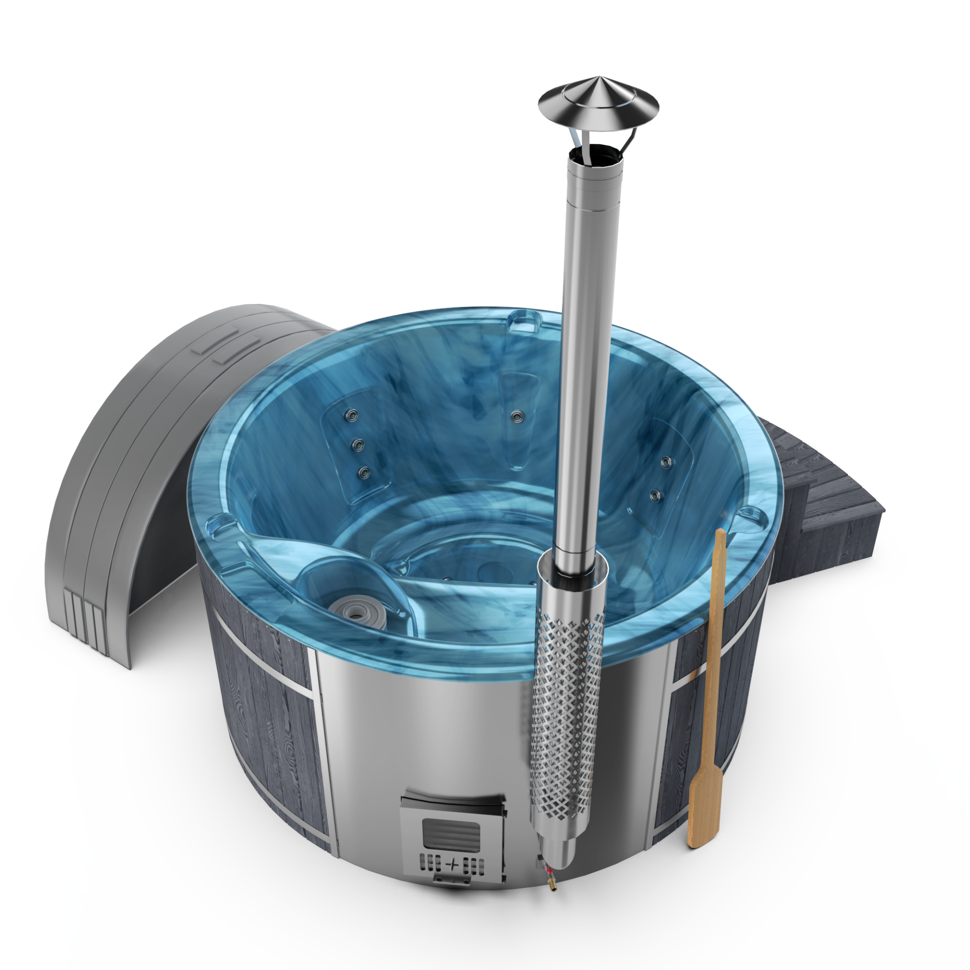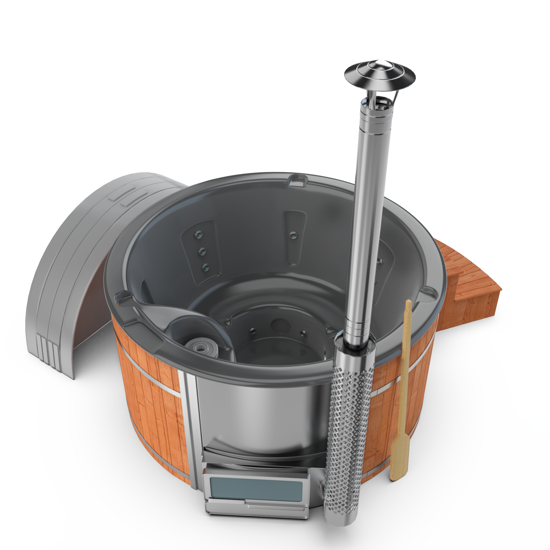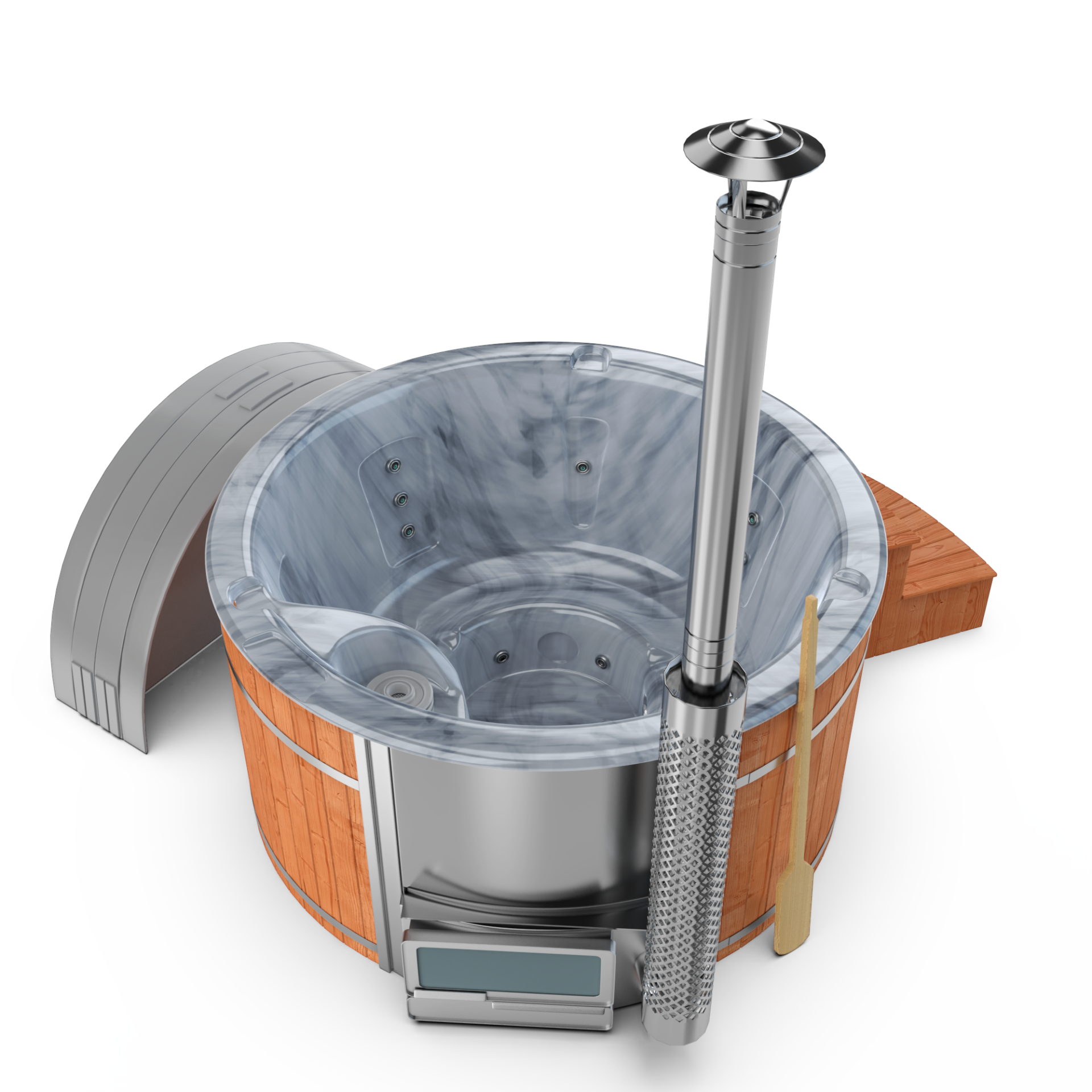 Experience quick relaxation with the “Heats Up in ±2 Hours” feature. Designed for efficiency, this rapid heating system ensures that your wood-fired hot tub reaches a comfortable temperature in approximately two hours, allowing you to swiftly unwind and immerse yourself in soothing warmth.